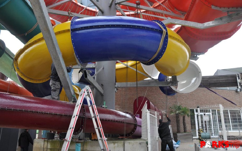 Le parc aquatique Belge Océade dévoile cette semaine de nouvelles photos du chantier de construction de ses deux nouveaux toboggans Barracuda et Cameleon. Le montage se déroule rapidement pour ces nouveautés dont l'ouverture est programmée pour la saison 2012. Pour rappel, Océade est connu pour ses nombreux toboggans aquatiques dont Bountyraft, le toboggan à bouée biplace le plus long de Belgique.